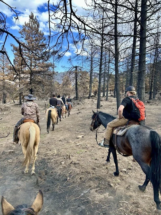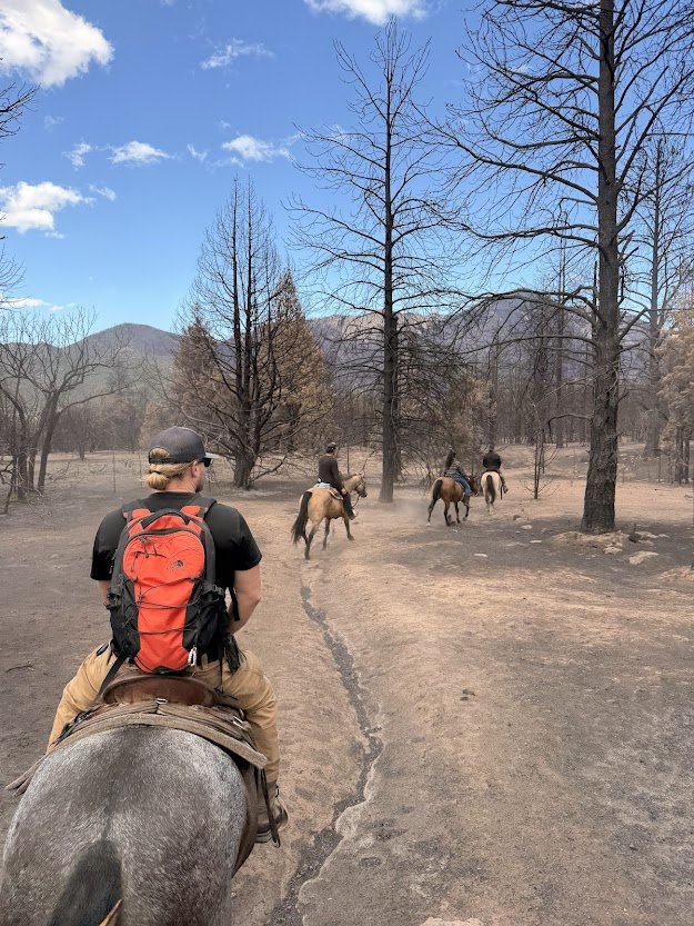 ReWilding on a Horse is a 4-day immersive retreat where horsemanship becomes a mirror for healing. Each participant is paired with their own horse,one you’ll learn to care for, connect with, and ride each day through the wild beauty of Pine Valley.