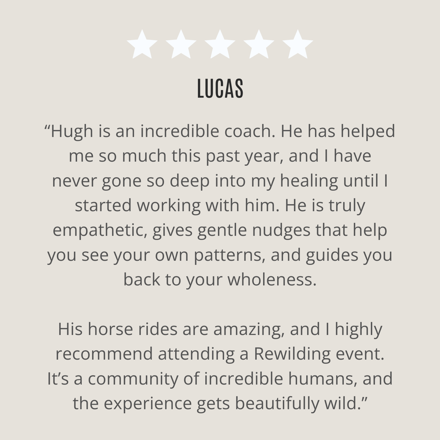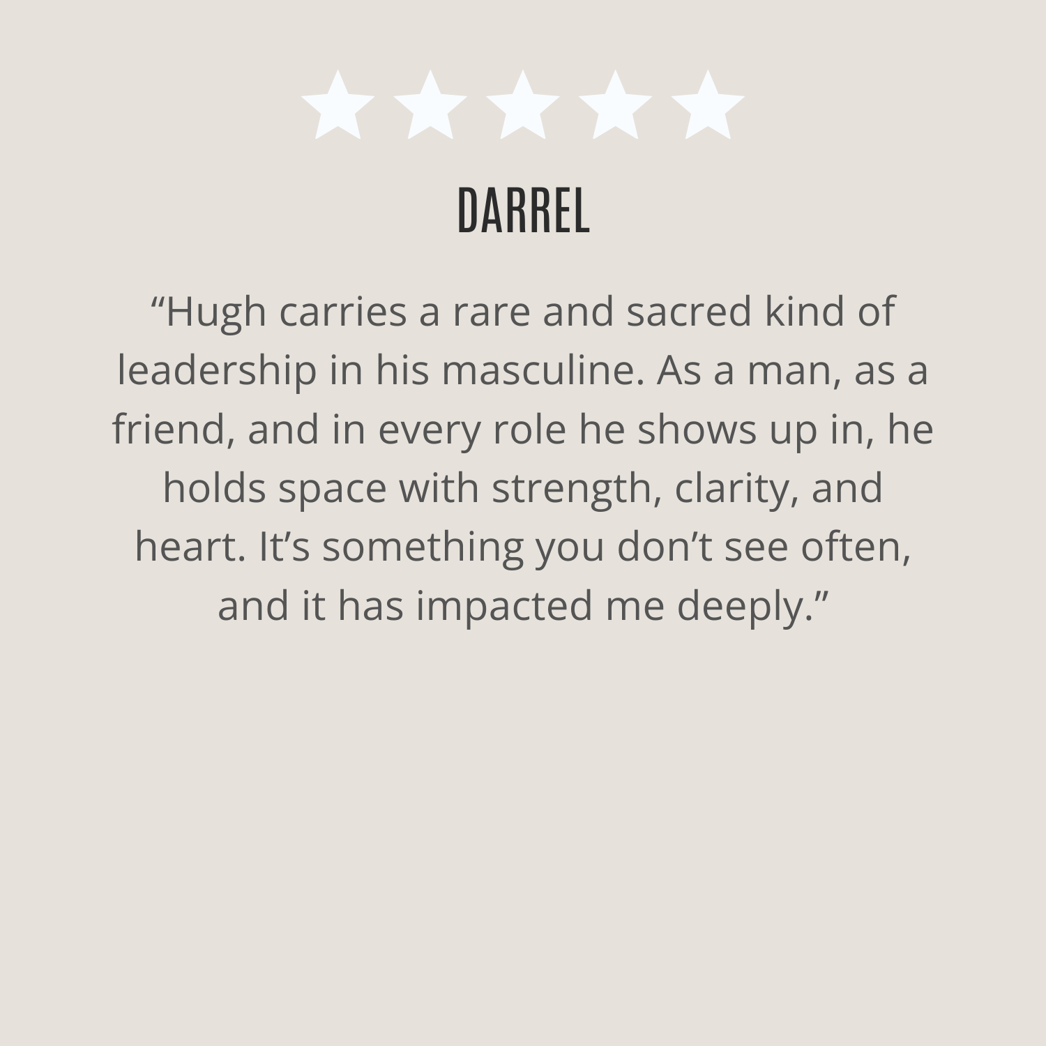 Hugh brings a grounded, masculine presence that allows you to feel both safe and seen, while being compassionately challenged to grow.