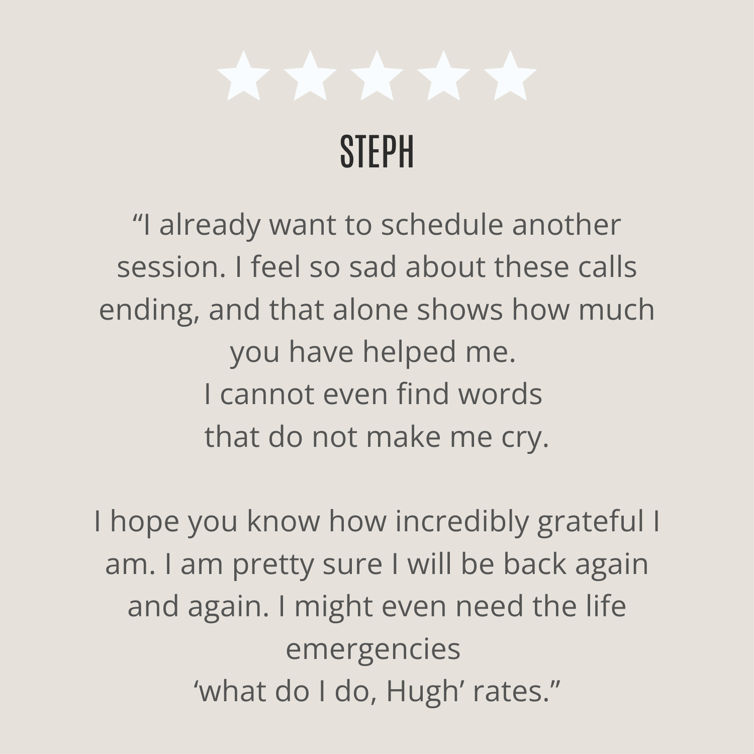 Each call with Hugh meets you where you are — whether you need clarity, challenge, or space to breathe.
